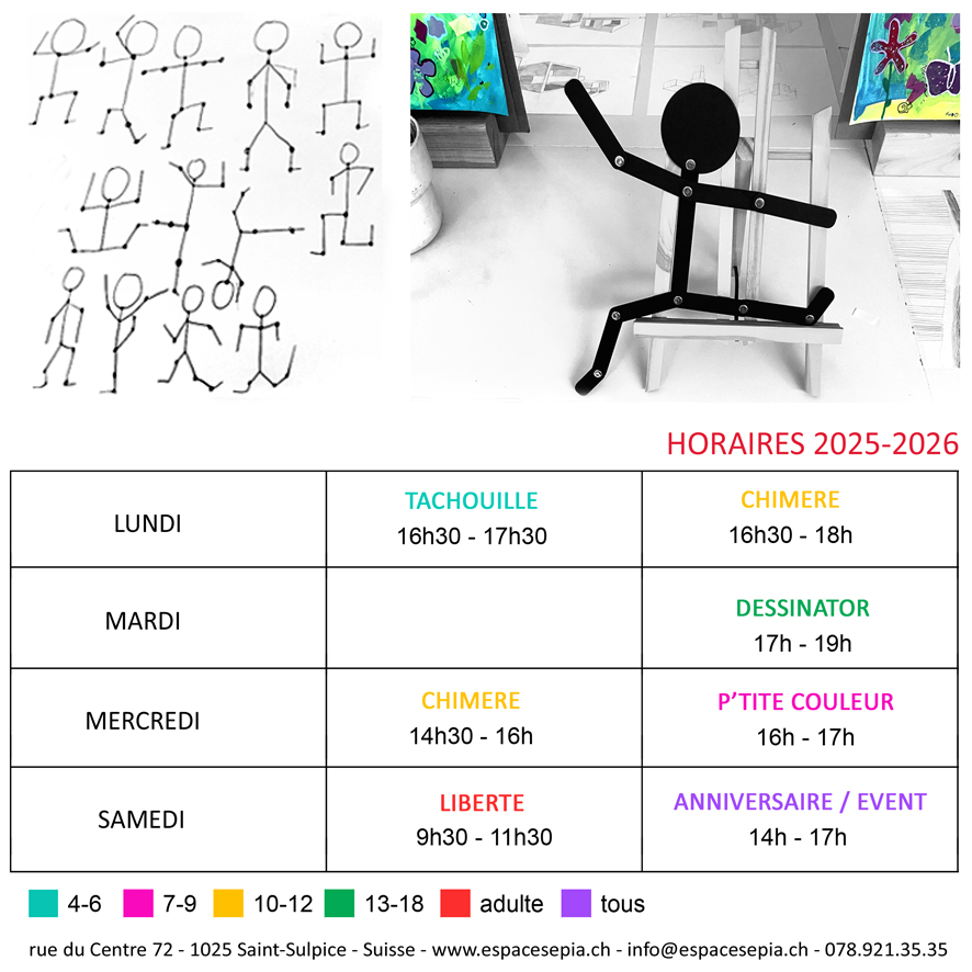 l’atelier vous propose des stages pendant les vacances scolaires, les week-ends et des ateliers tout au long de l’année.